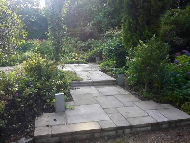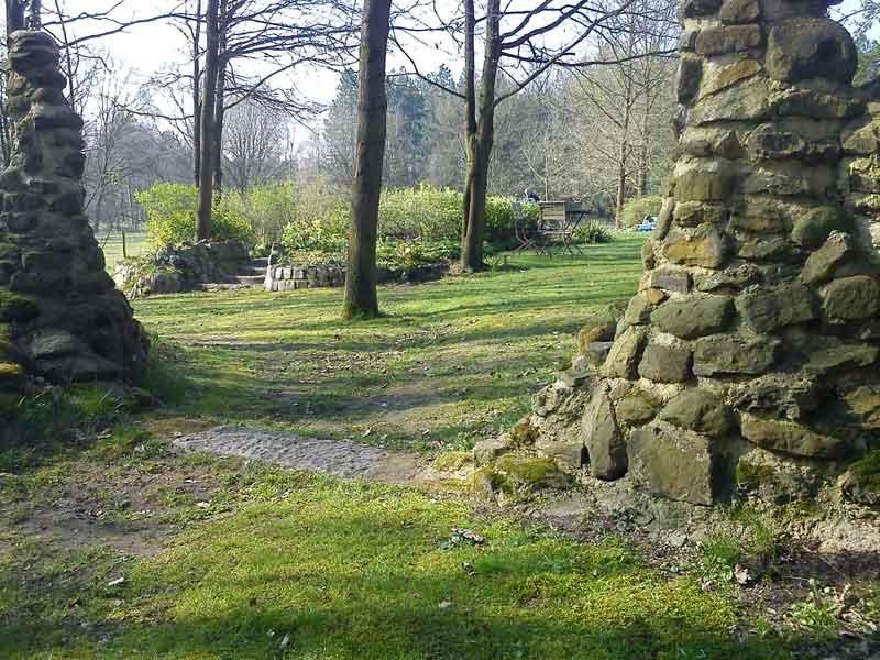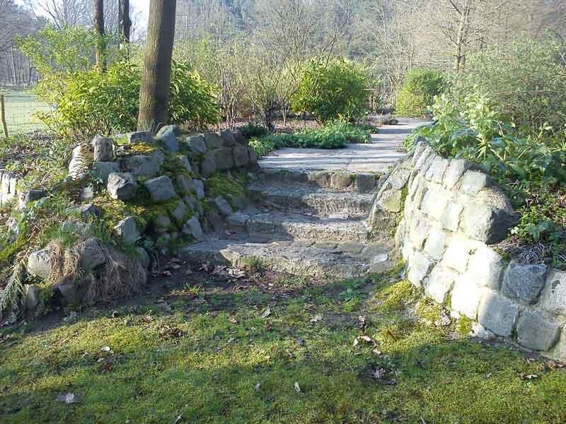 pilasters ijzerzandsteen als overgang tuin naar bosgedeelte